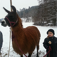 Eine besinnliche Wanderung mit den Naturparkführern Sabine Jordan und Michael Harnau führt Sie mit den Lamas in den Winterwald.
