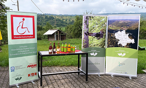 Die Pressepräsentation der vier ersten Routen-Flyer im Projekt „Inklusive Wanderbotschafter/-innen im Naturpark Schwäbisch-Fränkischer Wald“ fand Mitte Juni im Schützenhaus in Berglen statt.