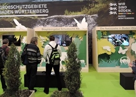 Auch der Naturpark Schwäbisch-Fränkischer Wald ist wieder auf einem gemeinsamen Stand der Großschutzgebiete Baden-Württembergs vertreten. Ob Nationalpark, Biosphärenreservate oder Naturparke – in den vielfältigen Landschaften Baden-Württembergs finden Sie alles, was Sie für einen erholsamen Urlaub in der Natur vor der eigenen Haustür benötigen: Exzellente Wander- oder Radwege, regional produzierte Gaumenfreuden sowie authentische Naturerlebnisse warten auf Sie.