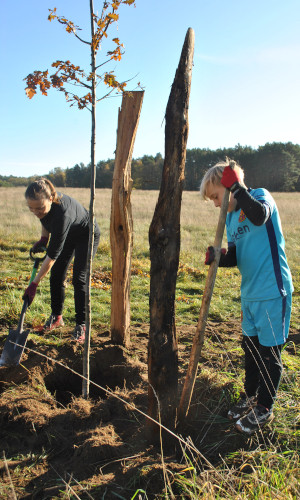 Die Stieleichen bereichern nicht nur das Landschaftsbild. Sie spenden Wanderern Schatten und bieten Vögeln und Insekten Lebensraum. Zugleich sind sie ein aktiver Beitrag zum Klimaschutz. Mit einer Lebenszeit von mehreren hundert Jahren binden sie in ihrem Holz viele Tonnen des klimaschädlichen Treibhausgases Kohlendioxid.