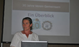 Die Vereinsvorsitzende Yvonne Nägel lässt 30 Jahre Vereinsgeschichte Revue passieren.