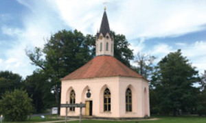 Ein weit sichtbarer Anziehungspunkt ist die besondere Gestalt der Kirche am Weg, deren Tür (fast) immer weit offen steht.