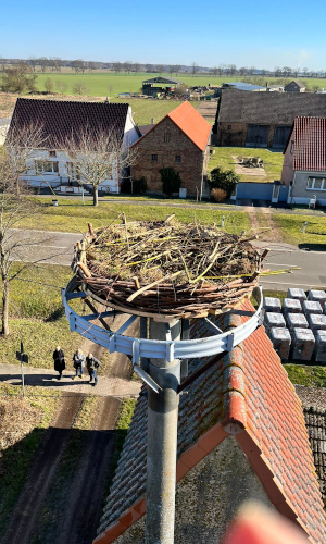 Der bisherige Horst war in den vergangenen Jahren von den anfliegenden Storchenpaaren nicht mehr angenommen worden. Das lag zum einen an den schwierigeren Bedingungen zur Nahrungsbeschaffung in den letzten Trockenjahren und zum anderen an dem schon arg ramponierten Rest des ehemaligen Horstes.