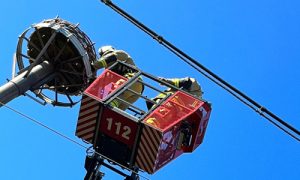 Arbeiten in luftigen Höhen – eine Gemeinsamkeit der Feuerwehr mit dem vorgesehenen „Mietern“.
