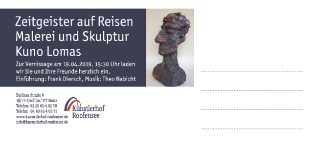 „Zeitgeister auf Reisen“ – Malerei und Skulpturen von Kuno Lomas ist der Titel der nächsten Ausstellung im Künstlerhof Roofensee.