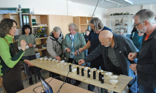 Anke Stamer vom Luisenhof Katerbow stellte in einem Vortrag ihre Ölmühle vor. Thema „Ohne Öl fehlt Dir was- Öle aus regionalen Produkten“. Im Anschluss konnten ihre im Manufakturbetrieb gepressten Öle verkostet werden.