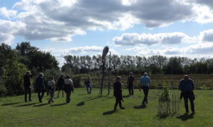 Bei der Führung durch das interessante Dorf bekamen wir Einblick in die Kirche, die einen Raum zur Übernachtung von Pilgern bereithält. Wir besichtigten den alten Gutspark, die Gemeindetreffpunkte und tauschten uns über modernen Skulpturen und historische Meilensteine aus.