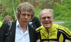 Radsportlegende Täve Schur zusammen mit Naturparkleiter Mario Schrumpf zur Eröffnung des Stechlinsee-Radweges von Menz nach Neuglobsow. ©Mario Schrumpf