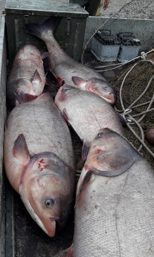 Im Großen Dölchsee wurden überwiegend große Bleie entnommen. Alle gefangenen Fische werden zu Fischbouletten verarbeitet.