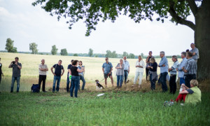 Zu Fuß ging es über vier Kilometer entlang verschiedener Feldflächen zurück zum Ausgangspunkt. Auf dem Spaziergang wurden Blüh- und Segetalschutzflächen sowie Flächen in der Umstellung auf eine ökologische Betriebsweise gezeigt und erläutert, welche Rolle dabei der Vertragsnaturschutz als Instrument der Honorierung von Leistungen der Landwirte spielt. Natürlich war auch für das leibliche Wohl gesorgt.