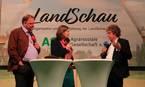 Naturparkleiter Mario Schrumpf im Gespräch mit Moderatorin Heike Götz und Michael Pfaff, Geschäftsführer des Bundesverbandes Deutscher Mittelgebirge.