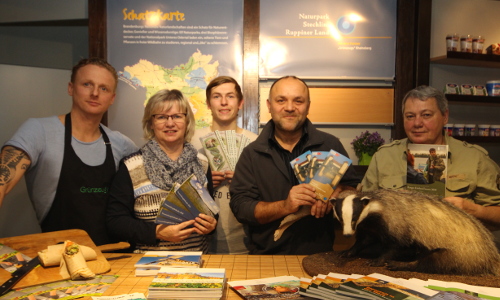 Hannes Gautzsch, Gudrun Quietzsch, Alfred Schult, Heiko Strobel und Petra Möhl am Stand der Brandenburgischen Nationalen Naturlandschaften