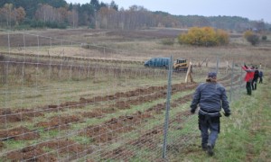 Auf der Ackerfläche an der Alten Kirschallee am Stadtrand der Wasserstadt wurde im November eine 650 m lange und 5 m breite Hecke gepflanzt.
