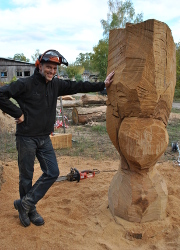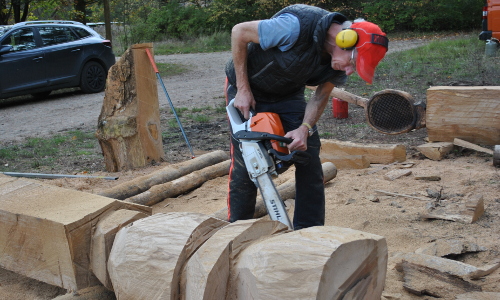 Eine Woche lang haben sechs KünstlerInnen in Neuroofen Eichenstämme bearbeitet. Die entstandenen Holzskulpturen werden im Ortsteil Menz in der Gemeinde Stechlin aufgestellt. Teilnehmende Künstler waren in diesem Jahr Martin Bill, Schweiz; Nicole Bischoff, Niederlande sowie Georg Janthur, Jens Kanitz, Gudrun und Kuno Lomas, Deutschland.