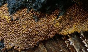 Trichia scapra – Orangefarbiger Haarstäubling (Schleimpilz)