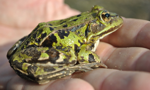 Dank des Ausbaggerns können Amphibien, wie der Teichfrosch, das Feldsoll wieder als Laichgewässer nutzen
