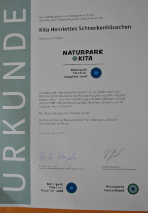 Im Jahr 2018 wurde die Menzer Kita erstmalig als Naturpark-Kita ausgezeichnet. In diesem Jahr wurde der Titel erfolgreich verteidigt.