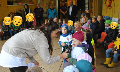 Die Knirpse zeigten in einem bunten Programm, was sie in Sachen Natur und Umwelt schon alles draufhaben. So wurden verschiedene Tiere des Waldes und Pflanzen in einem Foto-Quiz sicher erkannt.