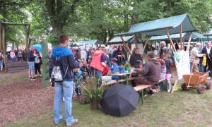 Zum ersten mal eröffnete der Landrat des Landkreises Oberhavel das Fest. Ludger Westkamp outete sich auch gleich als kleiner Fan der Veranstaltung, war er doch früher schon bei vergangenem Waldfesten als Besucher dabei. Am Sonnabend wartete dann fast 50 Stände mit ihren Angeboten auf die Besucher. Von A wie Ameiseninfo und Aal vom Fischer aus Wesenberg, über L wie Lama streicheln bei „Animal Trekking“ bis zu Z wie zusehen bei altem Handwerk. Die Kinder waren bei den vielen Bastelständen dabei und probierten sich beim Drechseln aus.