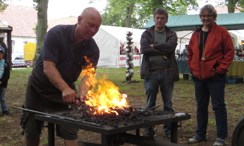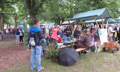 „Wollen wir heute das Waldfest in Regenwaldfest umbenennen?“, war die Frage eines Ausstellers nach dem bangen Blick zum Himmel. Leicht tröpfelte es den ganzen Vormittag vom Himmel. Aber die Aussteller und die Besucher nahmen es gelassen. Gab es doch auch in diesem Jahr wieder eine Menge zu sehen und zu entdecken.