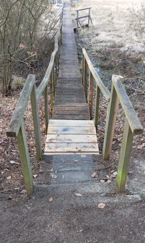Trittlöcher wurden mit neuen Bohlen und der gesamte Weg mit neuem Kükendraht versehen.