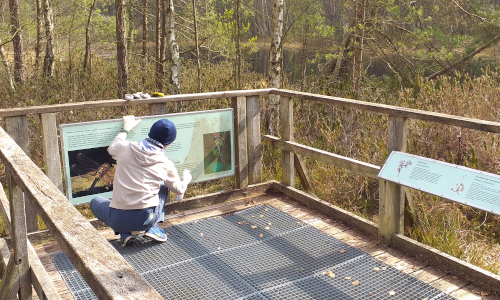 Eine Möglichkeit, bei welcher Mensch auf Moor trifft, ist unser Moorlehrpfad „Von Moor zu Moor“.