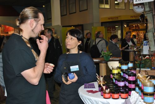 Am 22. und 23. Januar präsentierte sich der Naturpark am Stand der Nationalen Naturlandschaften in der Brandenburg-Halle 21a. Das NaturParkHaus Stechlin und die Naturwacht stellten am Donnerstag gemeinsam die Umweltbildungsprogramme des Besucherzentrums vor. Am Freitag war die Fa. Marmelo aus Rheinsberg am Naturpark-Stand zu Gast. Firmenchefin Katrin Wagner hatte 10 Fruchtaufstriche und 5 Karamellsorten zur Verkostung mitgebracht. Speziell für die Grüne Woche hat sie einen Blutorange-Whiskey-Fruchtaufstrich kreiert, der prompt zum Verkaufsschlager wurde. Mehr als 80% der Verkoster mußten einfach ein oder mehrere Gläser mitnehmen. Traditionell lädt der Naturpark jedes Jahr einen anderen regionalen Produzenten ein. Die Marmelo-Fruchtaufstriche sind alle vegan und werden nach den slow food-Richtlinien produziert. Alle Marmelo-Produkte sind auch im Naturparke-Spezialitäten-Shop (www.naturparkspezialitaeten.de) erhältlich.