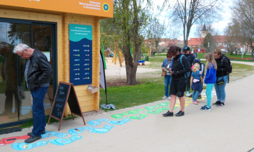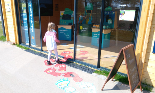 Der Eingangsbereich des Pavillons der Brandenburger NNL lockt mit den symbolisierten Fußabdücken selbst die Kleinsten.