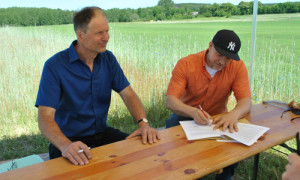 Von der Erweiterung des Naturparks Stechlin-Ruppiner Land wird in der Region ein kräftiger Impuls für den Naturtourismus und die Regionalentwicklung erwartet. Diesen aufzunehmen und auszugestalten erfordert ein enges Miteinander von Landkreis und Land. Deshalb unterzeichneten der Landrat des Landkreises Ostprignitz-Ruppin und der Präsident des Landesamtes für Umwelt am 9. Juni am Mittelpunkt des Landkreises Ostprignitz-Ruppin auf dem Gallberg eine Kooperationsvereinbarung, in der Ziele und Inhalte der Zusammenarbeit festgehalten werden.