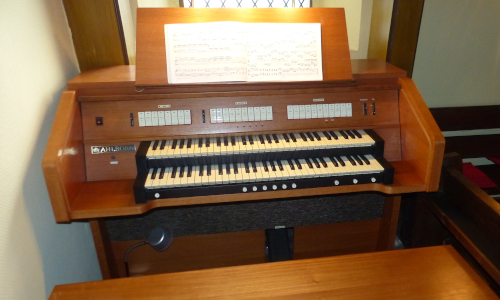 Nun konnte mit Spendengeldern eine gebrauchte elektronische Orgel der Firma Ahlborn aus Reutlingen gekauft, repariert und im Kirchenraum aufgestellt werden.