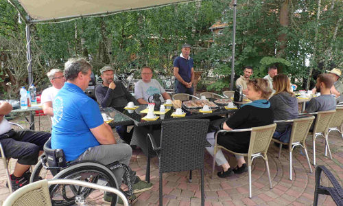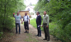 Bei der Bauanlaufberatung wurden vor Ort mit allen Beteiligten die Maßnahmen und Bauabschnitte abgestimmt. Sie sind alle gekommen: der Planer, der Projektträger, ein Eigentümer des Sees, der Förster – der Wege zur Verfügung stellt, der Landwirt – der den Seeschlamm zur Düngung seiner Felder nutzt, die Baufirma PS Kieswerke GmbH aus Perleberg, die Untere Naturschutzbehörde und die Nachbarn vom Haus Schönbirken sowie Jörg Tümmel, der seine Terrasse für die Anlaufberatung bereit gestellt hat.