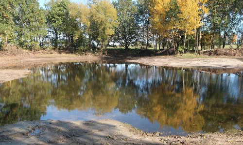 Dafür wurden zudem Gehölze am Südufer entnommen, um die Erwärmung des Gewässers und dadurch die Larvenentwicklung zu fördern. Mit dem Schnittgut wurden Totholzhaufen und eine Benjeshecke angelegt. Diese bieten den Amphibien Schutz an Land und neue Lebensräume für Reptilien, Vögel und Kleinsäuger.