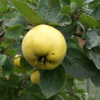 Obstgehölze auf dem Hof von Marc Marquardt, hier ein Quittenbaum, dessen Früchte er auch in seiner Mosterei verarbeitet.