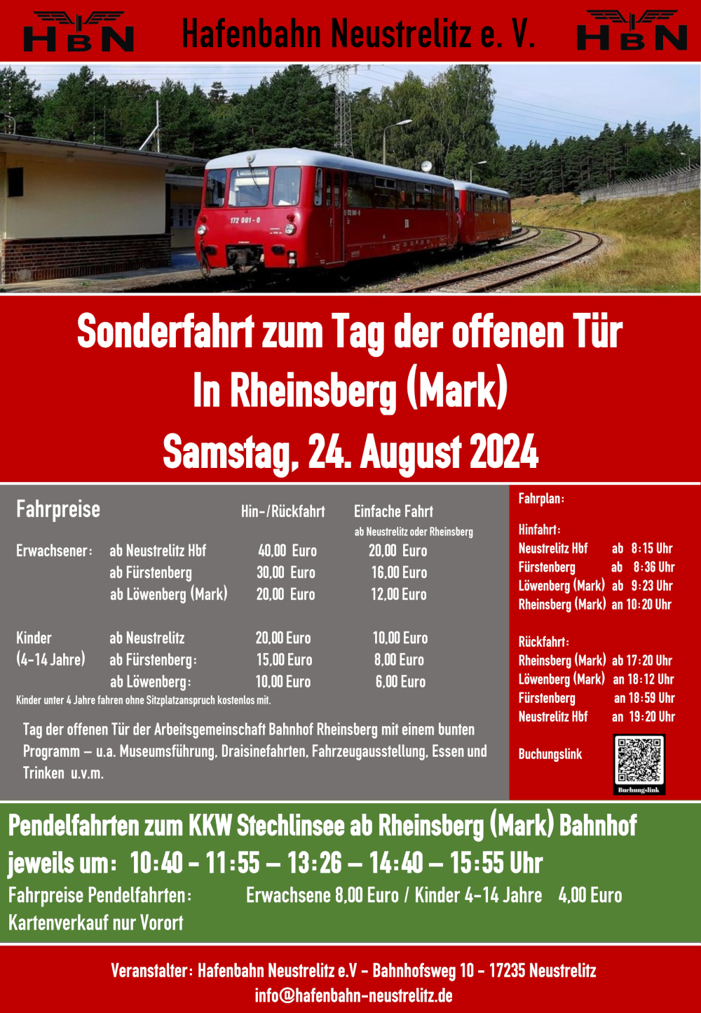 Genauer Ablauf und Abfahrtzeiten unter www.bahnhof-rheinsberg.de