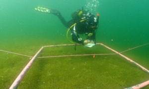 Sporttaucher vom Projekt Naturschutztauchen unterstützten die Studentin