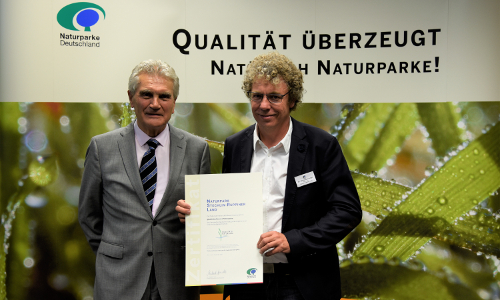 Naturparkleiter Dr. Mario Schrumpf hat aus den Händen von VDN-Präsident Dr. Arndt auf dem Deutschen Naturparktag in Eisenach am 18. September die Urkunde als Qualitätsnaturpark erhalten.