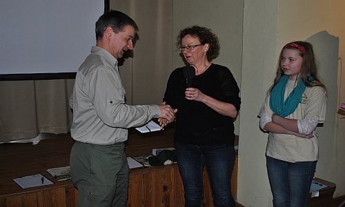 Die stellvertretende Direktorin der Theodor-Fontane-Schule Menz, Frau Alexandrin, bedankte sich bei Thomas Hahn für sein Engagement bei der Juniorrangerausbildung.