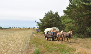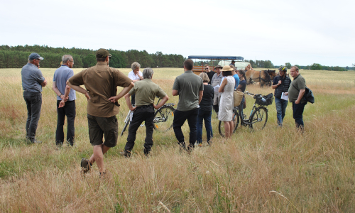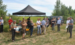 Höhepunkt des Feldtags war die Fahrt auf zwei Kremsern in eine nahgelegene Brachfläche. Hier konnten der Vorsitzende des Landschaftspflegeverbands, Andreas Bergmann, und der Leiter des Naturparks Stechlin-Ruppiner-Land, Dr. Mario Schlumpf, die wichtigen Funktionen von mehrjährigen Brachflächen mit ihren zahlreichen Insektenarten demonstrieren.