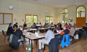 Im Saal der Regionalwerkstatt Stechlin in Menz konnten coronabedingte Abstände eingehalten und Grundlagen zur Arbeit in der Landnutzung in den Brandenburger Naturlandschaften ausgetauscht werden.