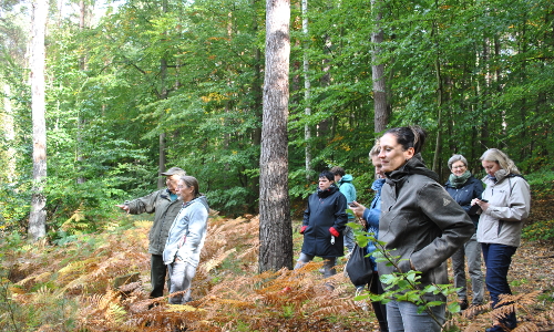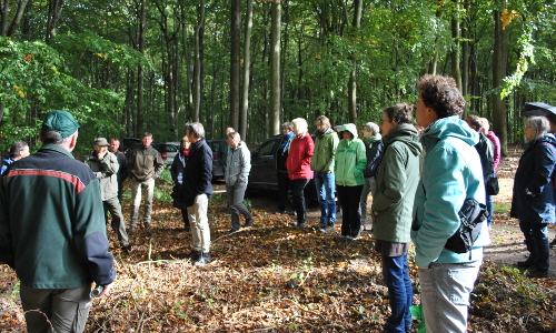 Im Naturschutzgebiet Stechlin bekamen die Teilnehmer*innen einen „Crashkurs“ in moderner Buchenwaldbewirtschaftung durch den Landeswald-Oberförster Sven Oldorff.