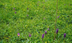dann blüht auch die Kuckucksblume oder wie die Orchidee richtig heißt, das Breitblättrige Knabenkraut und Knabenkraut heißt es, weil die unterirdischen Organe aussehen wie…, naja sie wissen schon….