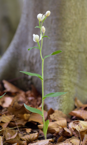 Wettererscheinungen wie Niederschlag oder Sturm beeinflussen in einem erheblichen Maße die Lebensbedingungen der Orchideen. Seit drei Jahren zählen wir auch den Bestand des weißen Waldvögleins, einer Waldorchidee. Vom Lichteinfall durch entwurzelte Bäume hat sie im letzten Jahr profitiert, in diesem Jahr leidet die Pflanze unter der Trockenheit. Im Rahmen unserer jährlichen Zählungen behalten wir den Bestand weiter im Auge.