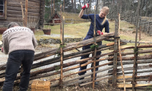 Einführung in die Tradition und Technik zur Errichtung eines Schweden-„stängsels“. Dieser Zaun begeistert Naturfreunde, weil er kostengünstig und aus nachwachsenden heimischen Rohstoffen hergestellt wird. Gearbeitet wird in Gruppen, die an Stationen alle Arbeitsschritte durchlaufen.
