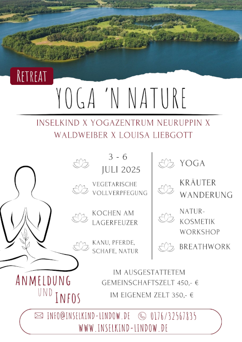 Fernab der Zivilisation, ohne Strom und digitale Ablenkung, versprechen Inselkind und Yogazentrum Neuruppin Entschleunigung pur! Sie laden die Gäste auf eine wundervolle Reise mit sich selbst ein.