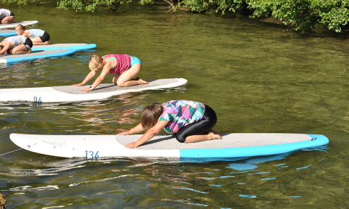 Treffpunkt ist am Bootsverleih in Neuglobsow. Der neue Sporttrend des Stand-Up-Paddelns wird mit Yoga auf dem SUP-Board um eine weitere Facette bereichert.