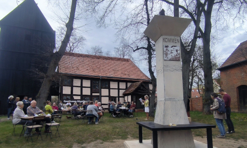 Zur Einweihungsfeier mit Kaffee und Kuchen kamen rund 50 Gäste auf den Rägeliner Kirchplatz. Projektmanagerin Uta Bartsch begrüßte die Gäste.