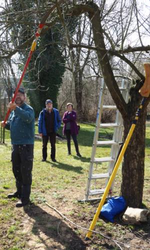 Nach dem theoretischen Teil wird es einen kleinen Mittagsimbiss geben (Gulaschsuppe, Brot, Kaffee) und anschließend findet auf der benachbarten Streuobstwiese der Praxisteil statt. Nach den Vorführungen besteht die Möglichkeit, das Gelernte unter Anleitung auszu­probieren. Ende der Veranstaltung wird gegen 15 Uhr sein.