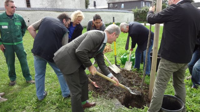 „Das Vorhaben macht die typische Natur im Dorf wieder sichtbar und erlebbar. Alternativ zu blütenlosem Schurrasen und Blautannen wird es zeigen, wie symbiotisch Pflanzen- und Tierwelt harmonieren, wenn vermisste Arten wieder hierher zurückkehren“, erklärte Thomas Franke, Vorsitzender des Naturpark-Vereins. Gemeinsam mit Thomas Heß und Christine Kober, der Leiterin der Naturpark-Verwaltung, pflanzte er symbolisch die ersten Gehölze: „Wir freuen uns, dass Thüringer Waldquell wirklich ein großes Herz für Thüringen hat und dabei nicht auf die städtischen Leuchttürme oder Goethe und Schiller schaut, sondern auf unsere Natur“, so Thomas Franke.