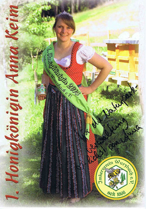 Sie heißt Anna Keim und ist die erste Majestät ihrer Art. Gekürt wurde sie vom Imkerverein Wurzbach und Frankenwald e.V. mit dem Ziel, für die Imkerei im Raum Wurzbach, einem kleinen Städtchen im Frankenwald, zu werben.