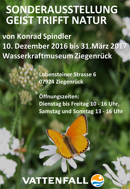 Eine Ausstellung von Konrad Spindler ist ab 10.12.2016 im Wasserkraftmuseum in Ziegenrück zu sehen: